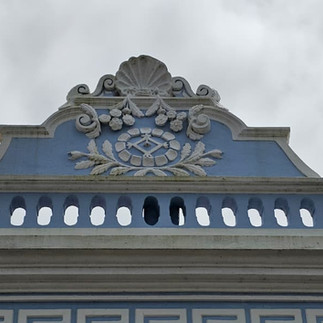 Em cima da platibanda, aparecem pináculos (pequenos elementos decorativos em formato de ponta ou vaso), que conferem imponência.